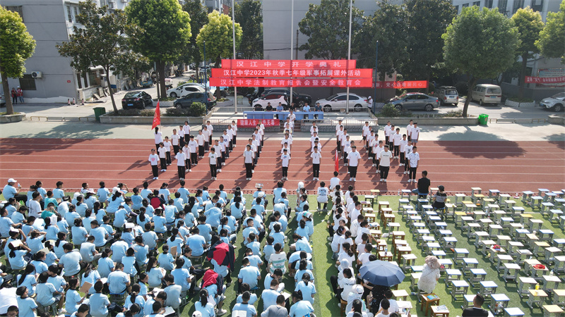本网讯记者钟军 通讯员龚援军报道:9月8日,在汉江中学新学期开学典礼上,一场精彩的军训汇报表演将现场气氛推向高潮。