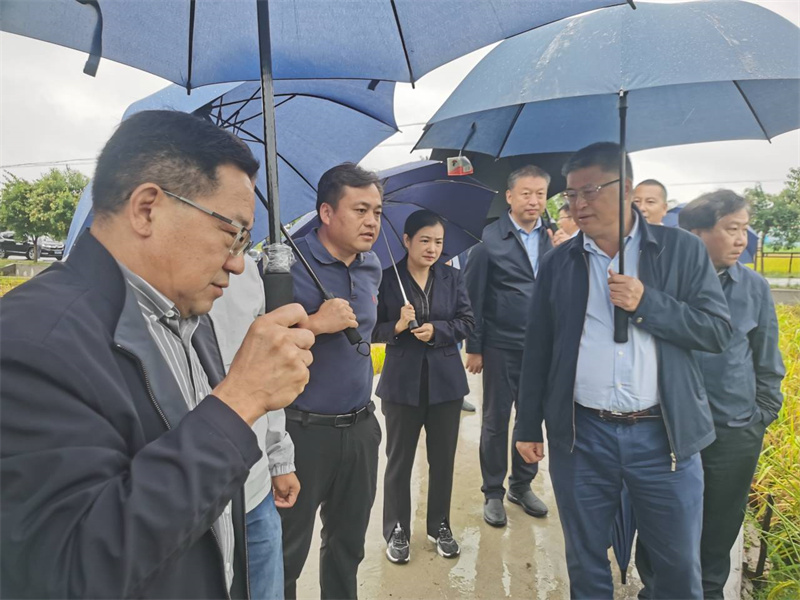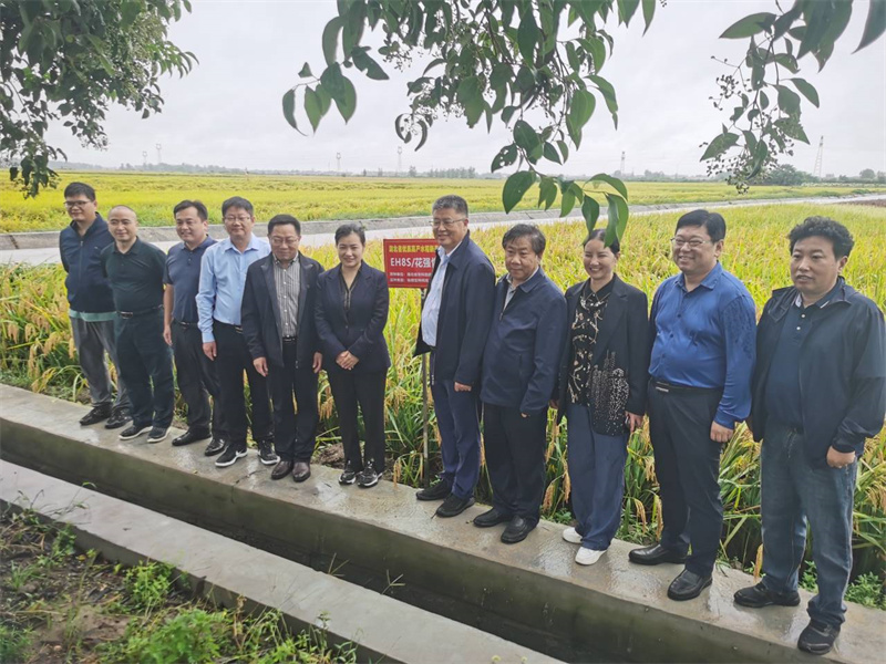 胡培松一行实地考察了鄢城街道木渠村优质稻种粮一体化基地建设情况,并对水稻E两优603测产,亩产达703.6公斤。