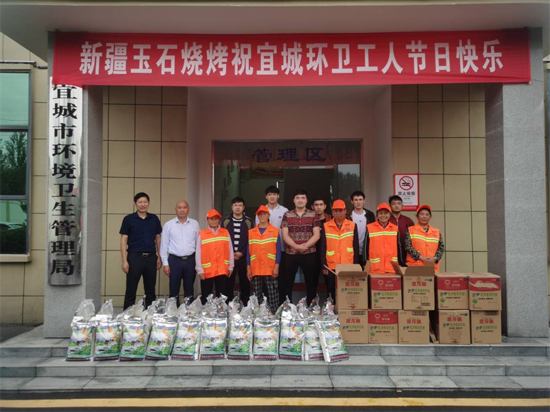 本网讯记者向杰廷通讯员孙沛东报道:9月28日上午,在宜城经营烧烤店的新疆青年乌拉木艾散来到市环卫局,为“城市美容师”的环卫工人送来了米面油等生活物资,感谢他们为美化城市付出的辛勤劳动,提前向他们送去节日的问候。