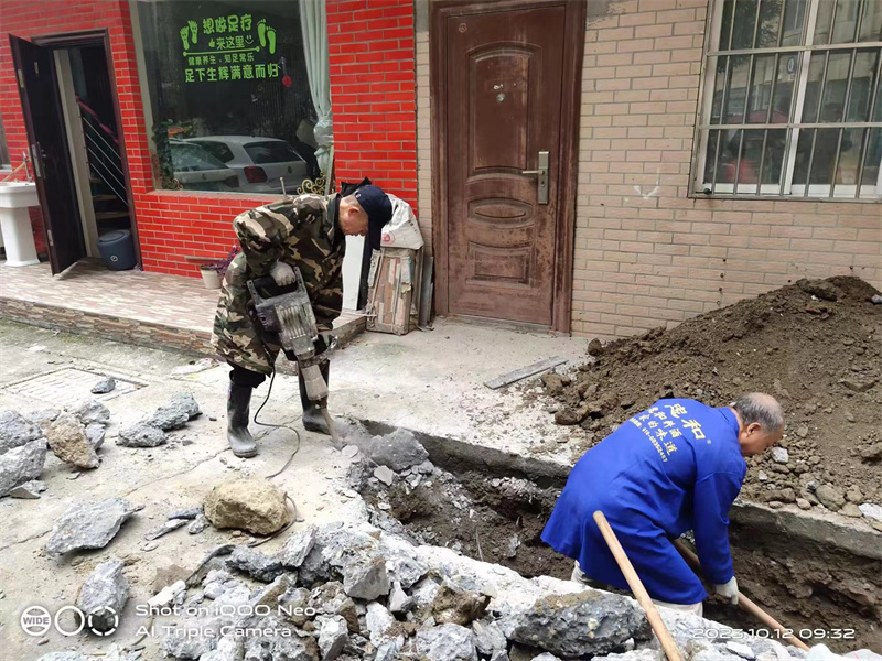 龙门社区碧水云天小区由于地势低洼,近几年来一遇到下大雨经常被淹,给小区居民造成很大的损失,为了解决这一重大隐患,小区人大代表邹继兵和小区物业经理贾德家,自筹资金10000元,一起购买改造下水道水管设备材料,由原来细管道,改换为粗管道,并购买水泥,沙石料和红砖,安排物业人员,对小区下水道进行改造施工。