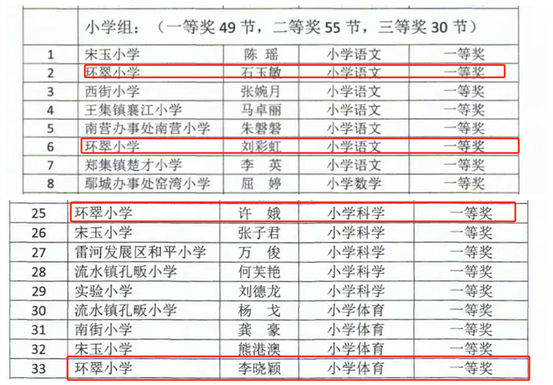 本网讯通讯员余涛 李海燕报道:近日,环翠小学在宜城市教育局2023年中小学、幼儿园优质课教师评选中取得4个一等奖、7个二等奖的佳绩,彰显了该校教师风采。