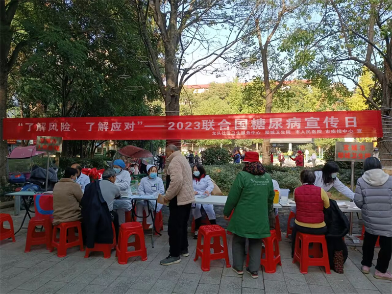 本网讯记者刘毅 郑潘通讯员龚新洪报道:11月17日,宜城市疾控中心、市人民医院、鄢城卫生院等医疗单位,在紫阳观广场联合开展2023年“联合国糖尿病日”宣传活动。
