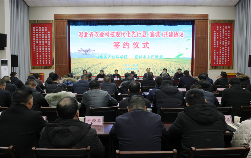 会上,省农科院院长游艾青和宜城市委副书记、市长肖平签订《湖北省农业科技现代化先行县共建协议书》;各研究所与企业签订先行县“揭榜制”项目协议。