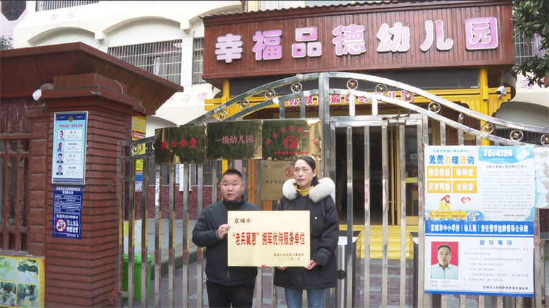 本网讯记者蔡小莉 通讯员杨贵 王太龙报道:12月27日,宜城市退役军人事务局为“老兵襄惠”拥军优待服务单位幸福品德幼儿园等授牌。