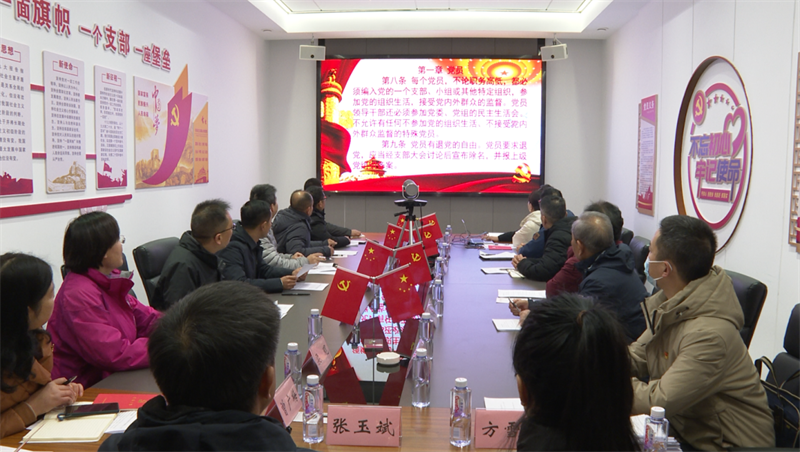 在会议室里,党员们齐唱国歌,集体诵读《中国共产党章程》,集中学习全省深化党员干部下基层察民情解民忧暖民心实践活动推进会等有关会议精神,传达襄阳市纪委监委通报5起不担当不作为典型案例,学习了《关于新形势下党内政治生活的若干准则》,观看了《薪火“襄”传——襄阳党史故事》系列节目。