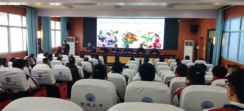 在宜城三中活动现场,宜城三中的学生们为学长们敬献快闪小合唱《送别》拉开活动序幕,校友们通过公开课堂的形式重温了课堂,追忆往昔的时光,随后校园校友参观了校园和办学风采展。