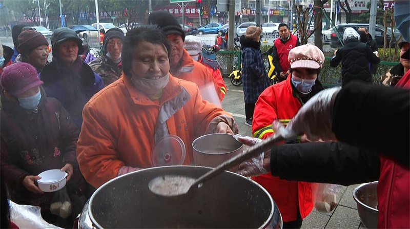 µÍ±£»§Ð»ÕýÃ÷˵:¡°¸ÐлËûÃÇÕâôÀäµÄÌìÆø»¹ÎªÎÒÃÇËÍÀ°°ËÖ࣬ÎÒ³ÔµÄÐÄÀïůºÍºÍµÄ£¬ÎªËûÃǵãÔÞ¡£¡±