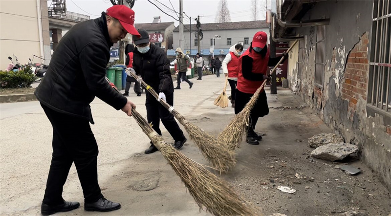 市融媒体中心党员干部们手持扫帚、镰刀等工具,对窑湾社区部分道路进行了垃圾清理,对乱堆乱放问题进行了整治。
