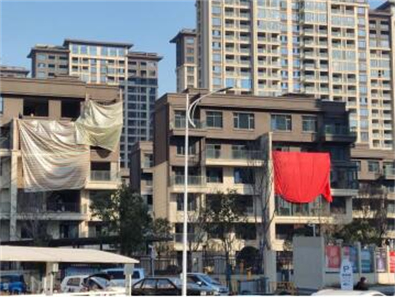 在九州龙城东边道路上,记者看到有一些垃圾未及时清理,有人在小区楼面上挂起了巨大的塑料布和红布,影响了小区的整体环境。