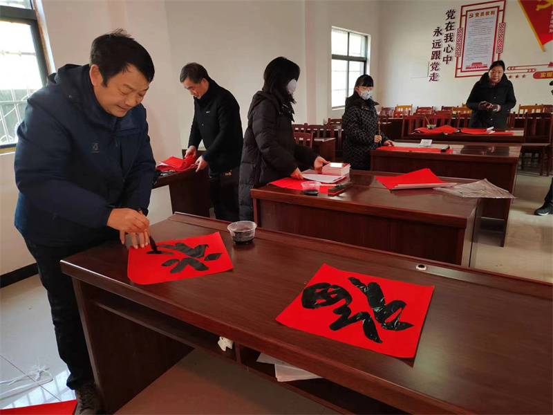 本网讯记者刘毅 通讯员屈金凯报道:1月29日,宜城市新时代文明实践中心、市委宣传部、市文联、市书法家协会走进郑集镇皇城村新时代文明实践站,联合开展红色文艺轻骑兵送春联下乡志愿服务活动,把新春美好祝福送进千家万户。
