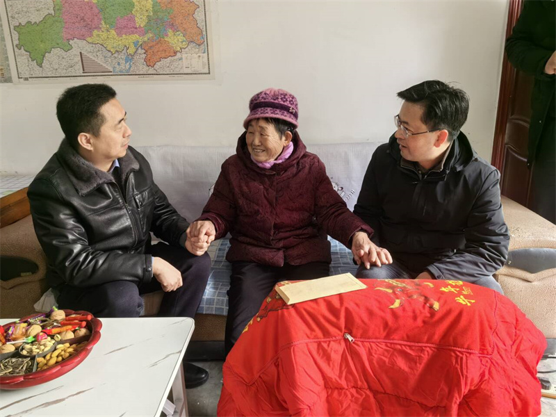 本网讯记者张尚东 通讯员王太龙 徐祖富 胡江涛 贾红艳报道:1月30日,宜城市副市长张雪峰、刘胜祥到南营街道、龙头街道走访慰问现役军官家属及困难退役军人,将党的深切关怀与温暖送到每一位军人家属和退役军人的心中,向他们表达新年的问候和祝福。