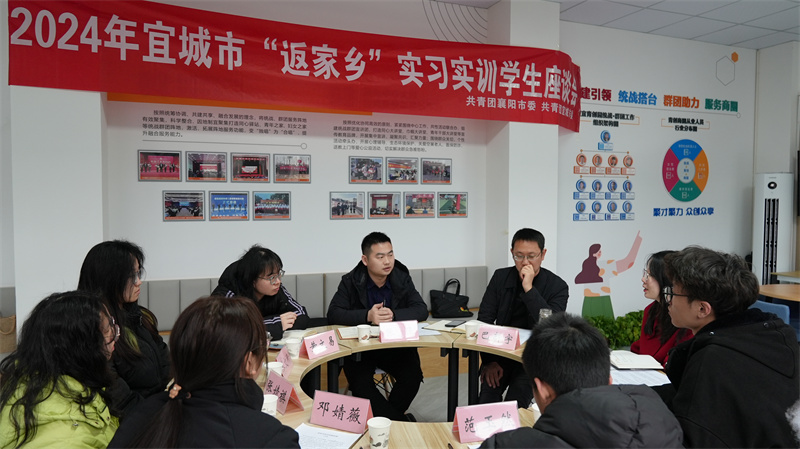 在楚宜青创园举行的"返家乡"实习实训学生座谈会上,来自各领域的志愿者代表们畅所欲言,交流学习工作感悟。张强结合当前发展形式,从就业创业等方面为大家提供科学指导意见,鼓励大家立足当前实际,树立正确的价值观、就业观、择业观,努力实现自身价值,为家乡发展作出应有贡献。