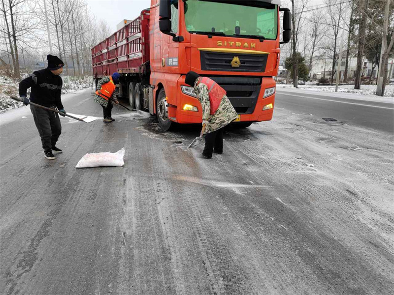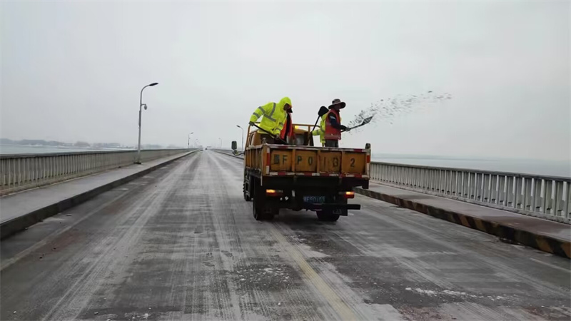 2月1日傍晚,宜城市公路管理局通过上级业务主管部门微信公众号发布道路冰冻预警,并安排各道班人员上路巡逻、并在应急车辆上放置钢丝绳、融雪剂帮助被困群众。由于凌晨公路出现结冰现象,市公路局迅速组织人员上路对陡坡、桥梁、转弯等易结冰路段连夜守护,撒盐除冰,确保道路安全畅通。