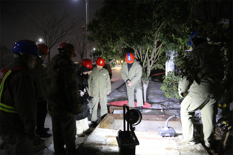 "今天抢修的主要困难点在于气温比较低,然后还下着小雪,对施工进度有一定的影响,现场施工环境比较复杂,对高质量完成电缆头制作有一定的挑战性。"李扬说道。
