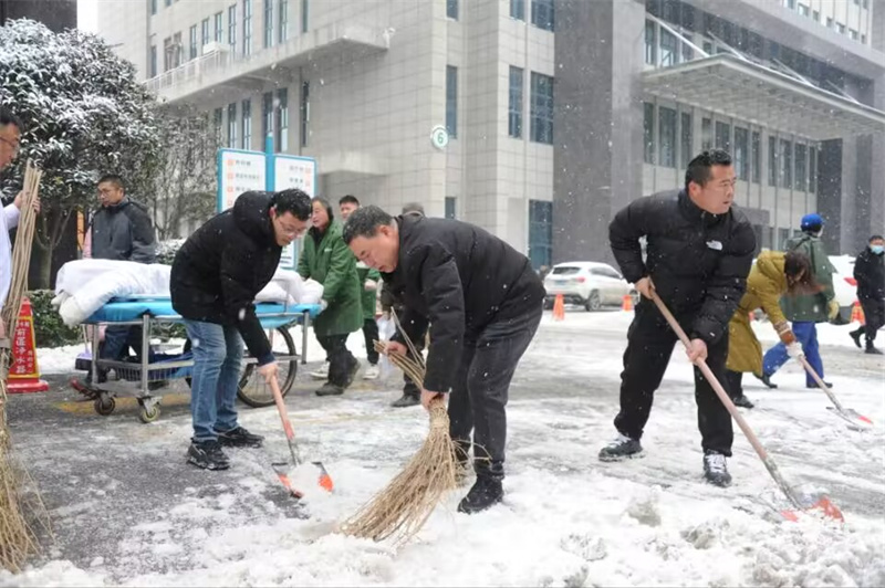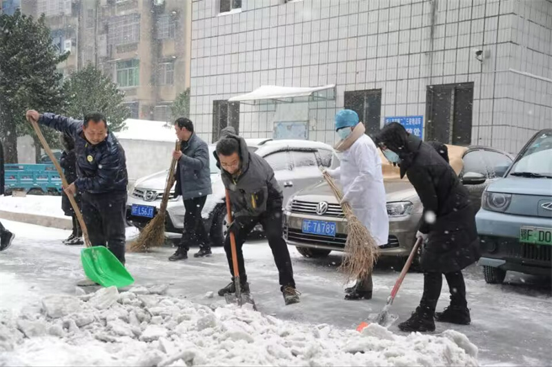 报道:连日来,宜城市普降大雪,给前来医院就诊的患者及家属带来诸多不便和安全隐患。为尽快畅通就诊通道,保障就医群众通行安全,宜城市人民医院组织干部职工一道清扫道路积雪,保障院内行人及车辆的安全出行,为患者提供良好的就医环境。