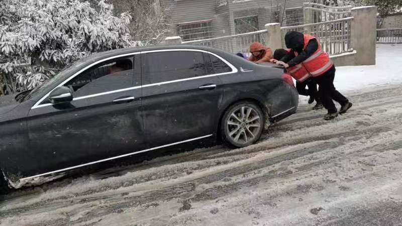 本网讯记者闵海啸 通讯员任金波 孙露报道:2月4日上午,一辆襄阳籍黑色皮卡因打滑被困至S250省道,宜城市公路管理局撒盐作业车途径此地,立即停车,四名作业人员齐力将受困车辆推上大坡。