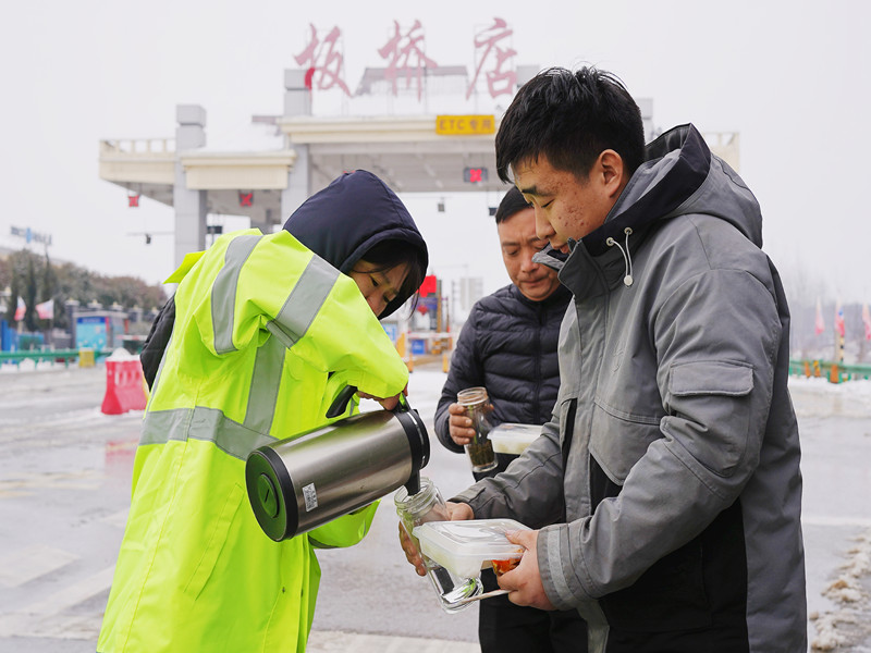 一杯杯热茶,满满的暖意;一份份热饭,满满的暖心,在寒冷的冬日,让滞留的司乘,多了一份份家的温馨与感动。