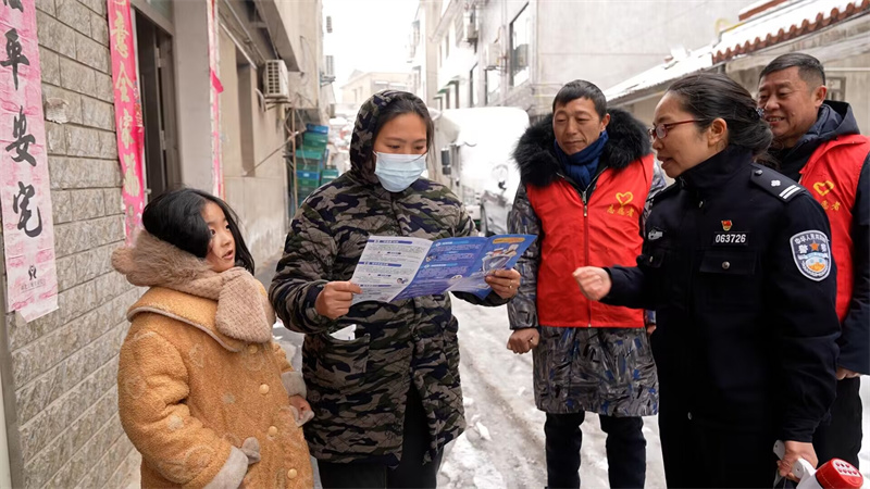 当天上午,民警和社区工作人员冒着风雪穿巷入户,向社区居民发放宣传彩页,详细讲解冬季防火、防范电信诈骗、防盗、预防一氧化碳中毒等知识,以及发生这些情况后如何进行现场自救。