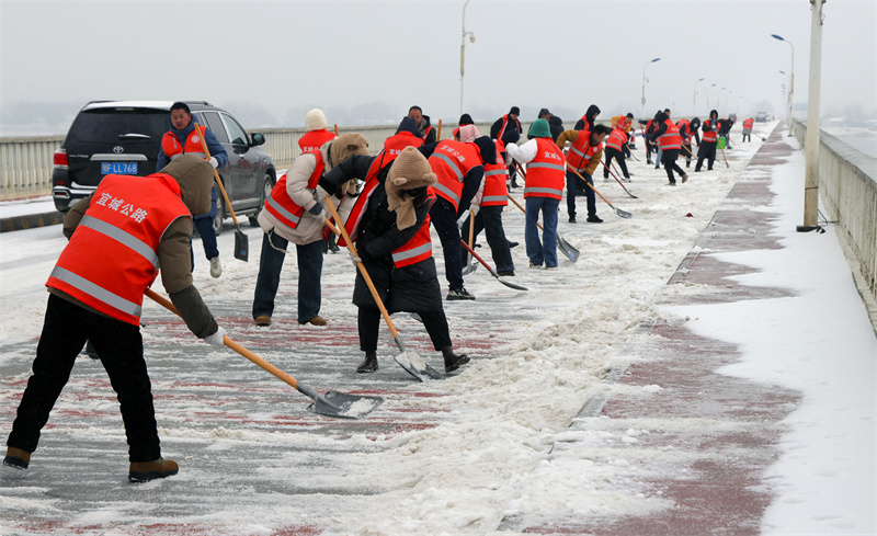 本网讯记者李勤 王楠 通讯员胡浩亮报道:雪情就是命令,保畅就是责任。2月21日上午,宜城市交通运输局组织抢险应急突击队,调集机械,对G346宜城汉江大桥、S250雷河大桥等易结冰路段进行融冰除雪,解决市民出行难题。