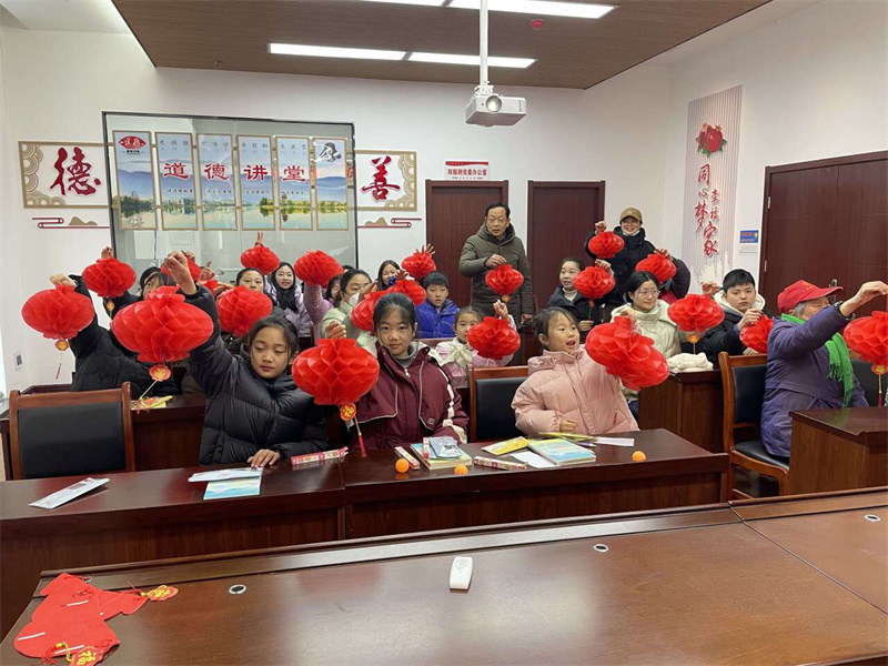 活动中,志愿者向小朋友们讲解灯笼的起源与发展、寓意以及制作流程、注意事项,并发放制作灯笼的材料。在志愿者们的带领下,大家兴致勃勃地开始制作灯笼,按照步骤依次折叠、粘贴、拼接、组装。制作过程中,大家你一言我一语,有说有笑,现场气氛欢乐祥和。不一会儿,一个个漂亮的灯笼就展现在大家眼前。小朋友们爱不释手,一边展示作品,一边拍照合影,每个人脸上都洋溢着幸福的笑容。