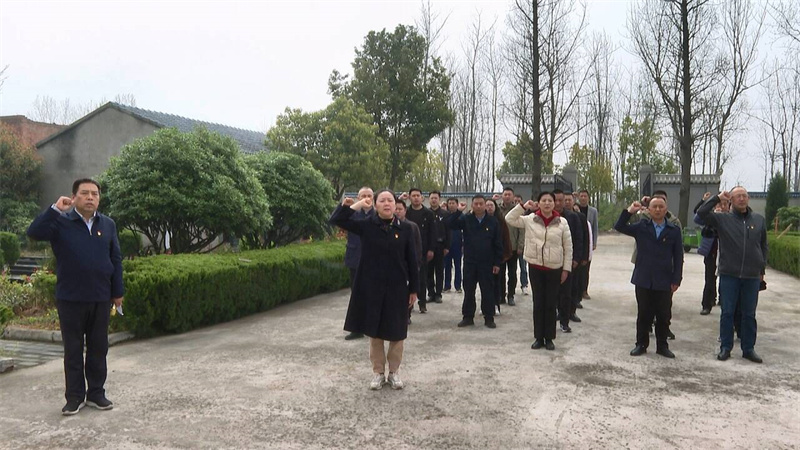 活动中,全体党员高唱国歌,激昂的旋律回荡在烈士陵园上空,凝聚起强烈的爱国热情。随后,大家肃立在烈士纪念碑前,高举右手,庄严宣誓,重温入党誓词,回忆入党初心。