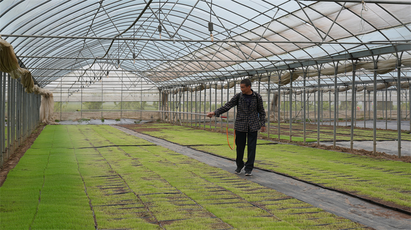 4月12日,记者走访了位于南营街道办事处的京瑞通达公司工厂化育秧基地。一排排钢架大棚整齐排列,湿润的水稻秧苗在春日暖阳下冒出嫩芽,呈现出一片生机勃勃的景象。工人们正忙碌地进行浇水、喷药、温控管理等作业,确保秧苗茁壮成长。