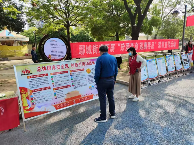 本网讯通讯员罗学勇 胡梦平报道:4月15日,是第九个全民国家安全教育日,也是总体国家安全观提出十周年。当天,宜城市总工会全体干部职工在紫盖山广场开展“国家安全教育日暨禁毒宣传”活动。