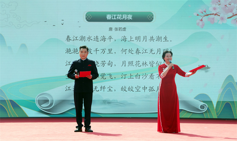 “轻轻打开地图,我第一眼就看到了彩色的中国……”阅读活动在宜城市实验小学学生诵读的《彩色的中国》中拉开序幕。市机关事业单位、学校、社会各界代表带来了经典诗词诵读《春江花夜月》、《怀宋玉》,情景集体诗朗诵《宜城好》、音乐快板《“扫黄打非”保平安》等。