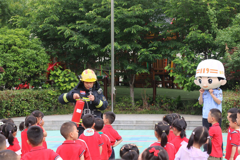 演练结束后,消防员针对孩子们年纪小、好奇心强、活泼好动的特点,通过互动问答形式对火灾的危害、生活中如何预防火灾、如何逃生自救、如何正确拨打119火灾电话、如何使用灭火器等消防安全知识进行了讲解。同时为幼儿园教职工做了一个简短的消防培训,教授他们灭火器的用法及操作顺序。