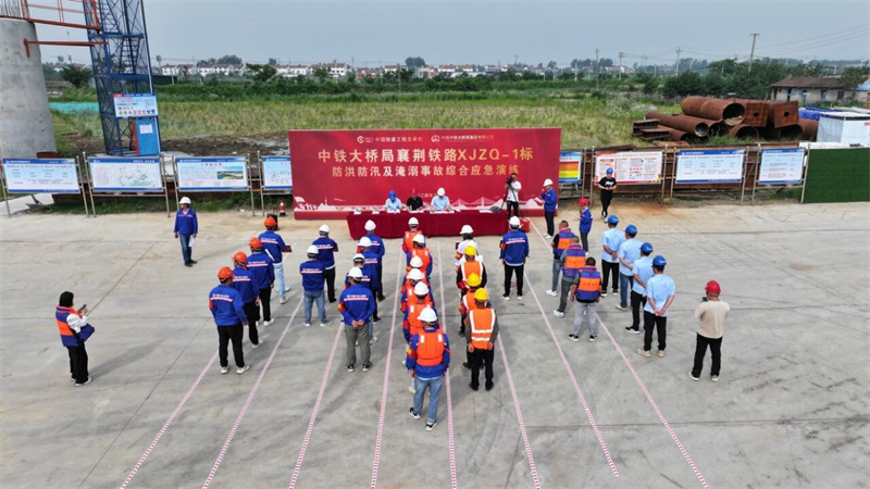 襄荆高铁汉江特大桥全长12.961千米,为襄荆铁路全线主要控制性工程。此次演练模拟襄荆高铁XJZQ-1标汉江特大桥因连日强降雨,外加上游泄洪影响,水位猛涨2米,出现370#桥墩处边坡受损和抢险人员不慎落水急需救助险情。