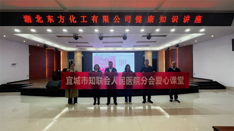 当天,医护人员来到湖北东方化工有限公司与企业管理人员和员工代表面对面座谈,认真听取诉求,就企业关心的医疗健康问题举办“爱心课堂”健康知识讲座。五位专家分别讲解了关于慢性病总体预防保健、糖尿病、脑卒中、创伤性疾病、妇产科常见疾病的相关知识,现场解答了企业员工提出的问题并进行义诊,赢得了企业家和员工的赞誉。