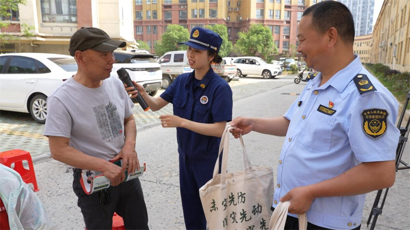 本网讯记者陈飞 通讯员 程胜勇 魏丽娜报道:5月23日,宜城市应急管理局、宜城市科协、宜城市消防救援大队到鄢城街道宋玉社区开展安全宣传进社区活动。