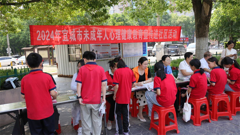 本网讯记者李勤通讯员刘俊峰 杨丽萍报道:5月25日,市委文明办、市检察院、市教育局、市民政局、市卫健局、团市委、市妇联等单位联合在窑湾社区、紫阳观社区开展2024年宜城市未成年人心理健康教育宣传活动,进一步宣传普及心理健康知识,增强未成年人心理健康意识。