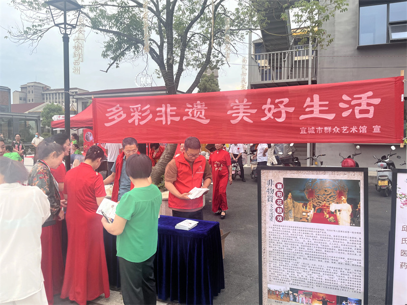 活动现场,市群艺馆志愿者还向过往市民、观众和游客免费发放襄阳市非物质文化遗产宣传手册,《宜城兰花筒》等非遗丛书,让市民进一步了解本土非遗知识。