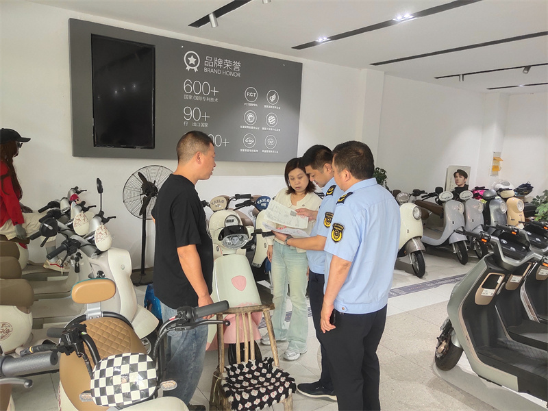 本网讯通讯员刘庆涛 员梦逸报道:为加强电动自行车质量监管,防范电动自行车火灾,保障广大消费者的合法权益,6月5日,宜城市市场监督管理局开展了电动自行车经营户专项监督检查。