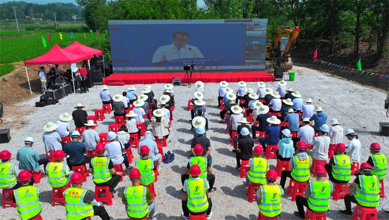 本网讯记者李勤 邬玲玲报道:6月11 日,襄阳市举办水利国债灌区项目集中开工仪式,宜城市领导肖平、曾劲松、付青峰等在宜城分会场刘猴镇北河山洪沟治理项目开工现场参加活动。