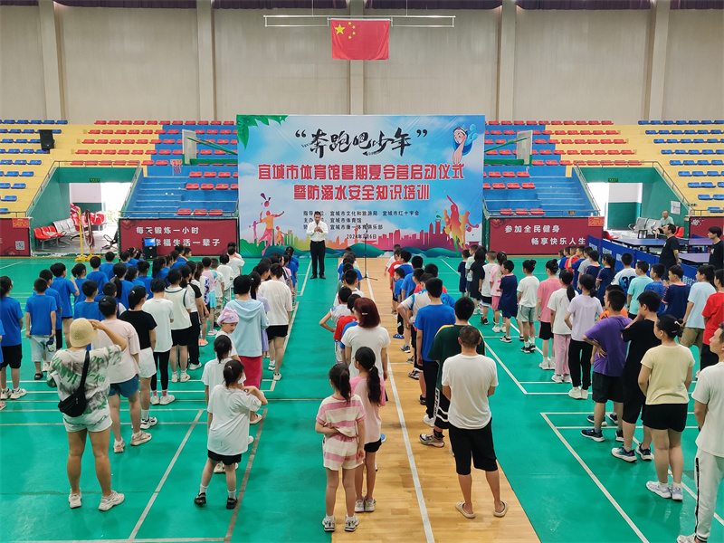 本网讯记者郑潘报道:7月6日,“奔跑吧,少年”2024年体育馆暑期夏令营在宜城市体育馆启动。本次暑期夏令营开设有游泳、羽毛球、乒乓球等项目,来自全市各中小学的120多名学生参加。