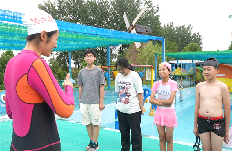 在流水镇莺河村的水上乐园,有各种刺激的水上设施,还有专业的游泳教练为孩子们提供游泳技能培训,让它成为了孩子们夏日游玩的热门选择。为保障孩子们的安全,水上乐园还加强了防溺水教育,确保孩子们在享戏水乐趣的同时,掌握必要的安全知识。