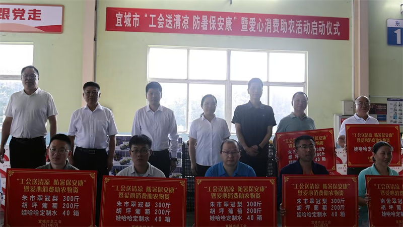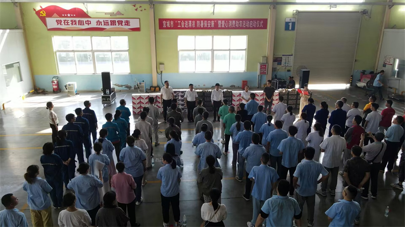 本网讯记者刘毅通讯员周佩 雨鲁丽报道:7月30日,宜城市“工会送清凉 防暑保安康”暨爱心消费助农活动启动仪式,在湖北友谦汽车零部件有限公司举行。市领导王海、廖华荣、丁国锋参加活动。