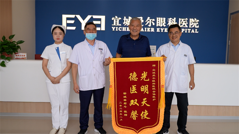 ±¾ÍøÑ¶¼ÇÕßÁõÒã ͨѶԱ¼òÃν౨µÀ£º8ÔÂ9ÈÕ£¬ÍËÎéÀϱøÑ¦¾ý¶·½«Ò»ÃæÐ´ÓС°¹âÃ÷Ììʹ µÂҽ˫ܰ¡±µÄ½õÆì£¬Ë͵½Ò˳ǰ®¶ûÑÛ¿ÆÒ½ÔºÖ÷ÖÎҽʦÊÖÖУ¬¸ÐлҽÉú¼°»¤ÀíÈËÔ±¶ÔËûµÄ¾«ÐÄÖÎÁÆÓëÈÈÇé·þÎñ¡£