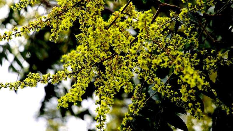 ÕâÆ¬èïÊ÷ÁÖÒѾÉú³¤30¶àÄêÁË£¬Ê÷¸ß´ï5Ã׶ࡣÿÄê8Ôµ×9Ô³õ£¬èïÊ÷±ã»á¿ª³ö¶ä¶ä½ð»ÆÉ«µÄ»¨£¬»¨ÆÚ³Ö¾Ã£¬³¤´ï1¸ö¶àÔ¡£µ½ÇïÄ©³õ¶¬£¬ËüµÄ¹û×Ó»áÂýÂý³ÉÊ죬ÓÉ×î³õµÄµÇàÉ«½¥±äΪ·Ûºì¡¢Éîºì£¬ÏñСµÆÁýÒ»ÑùȼÉÕÔÚ֦ͷ£¬ÓÖ³ÆÎª ¡°µÆÁýÊ÷¡±¡£