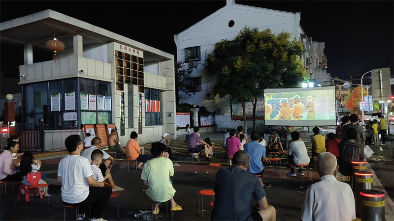在公园、广场、社区,观影群众或席地而坐,或依势而立,三五成群、扶老携幼,时而为跌宕起伏的故事情节揪心,时而为风趣诙谐的语言对白而开怀。