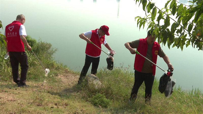 在楚都公园,志愿者们三个一群,五个一伙,分片捡拾被丢弃的塑料袋、生活垃圾等,对一些隐藏在绿化带的垃圾也进行细致清理,不留卫生死角,以实际行动带动大家共同维护环境卫生,并到鲤鱼湖边清理河道垃圾,改善水域环境。