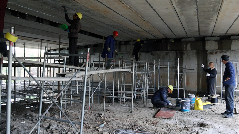10ÔÂ22ÈÕ£¬ÔÚλÓÚ207¹úµÀÒ˳ǶΰÙÀïÇþÇÅÃæµÄÏ·½£¬¶àÃû¹¤ÈËÕýÔÚ½ÅÊÖ¼ÜÉÏæµ×Å£¬½«Ò»¸ù¸ù¹âÏ˹âÕ¤Ö²ÈëÇÅÌåµÄ·ì϶ÖУ¬ÎªÂ·ÇÅ×°ÉÏÁËÎÞÊý¸ö¡°ÄÚ¿ú¾µ¡±¡£
