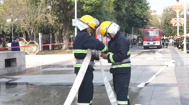 启动仪式后,现场进行了比武竞赛,共有13支多种形式消防队伍参加了本次比赛。赛事安排立足实际,以实战化为出发点,为企业专职队开展单干线出两支水枪操、两人五盘水带连接,微型消防站队伍开展连接室内消防栓出水操、 灭火器50米灭油池火竞赛科目。比武过程中,全体参赛人员严格遵守比武纪律和要求,发扬奋力拼搏,团结协作的精神,展现了良好的精神风貌。