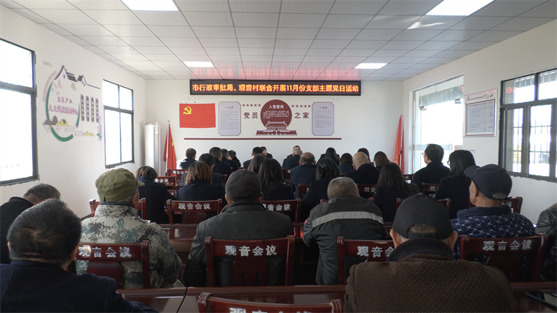 本网讯记者张玥琪通讯员邬乐云报道:11月28日,宜城市行政审批局、王集镇观音村联合开展以“学深悟透全会精神 奋力冲刺全年目标任务”为主题的11月份支部主题党日活动。