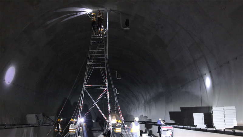 ÔÚÏå¾£Ìú·¼âɽ¿²ËíµÀ³ö¿Ú£¬¼ÇÕß¿´µ½£¬¶àÃû¹¤ÈËÕýÔÚÇÀ×¥¹¤ÆÚ£¬°²×°Áгµ½Ó´¥ÍøµÄµõÖù£¬ÎÒÃÇËù³Ë×øµÄ¸ßÌú£¬¾ÍÊÇͨ¹ý½Ó´¥ÍøµÄÎȶ¨¹©µçÀ´ÌṩÔËÐж¯Á¦¡£