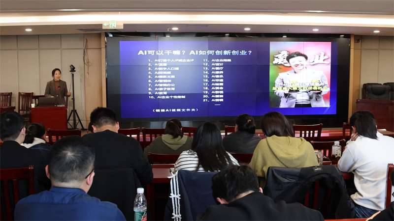 此次培训邀请了武汉城市职业学院讲师授课,内容以“AI赋能办公效率提升”为主题,对Deepseek等前沿工具进行横向对比,详细解析其特色功能,并通过现场操作示范,重点讲解如何利用AI快速生成公文框架、自动提炼会议重点、优化汇报材料,以及如何使用AI一键生成PPT模板、智能匹配图文和视频素材等功能,为现场干部职工提升工作效率提供新方法、新技巧。