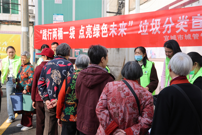 本网讯记者谢子恒 通讯员陈云报道:4月8日,宜城市城管局联合望江路社区,在农工街老环卫局家属院开展“践行两桶一袋 点亮绿色未来”垃圾分类宣传活动。通过知识讲解、互动体验等形式,引导居民从源头做好垃圾分类,共建绿色家园。