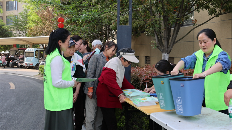 ÔÚ¶«Ì©ºþÅÏÒ¼ºÅÐ¡Çø£¬¹¤×÷ÈËÔ±ÏòÐ¡Çø¾ÓÃñ·¢·ÅÐû´«×ÊÁϺ͡°Á½Í°Á½´ü¡±£¬ÎªËûÃǽ²½âÈçºÎ¸ù¾ÝÀ¬»øµÄÐÔÖʺÍÖÖÀà½øÐÐÕýÈ··ÖÀ࣬ÒÔ¼°ÈçºÎʹÓá°Á½Í°Á½´ü¡±ÉèÊ©½øÐвÙ×÷£¬Ìá¸ßÀ¬»ø·ÖÀàµÄЧÂʺÍ׼ȷÐÔ¡£